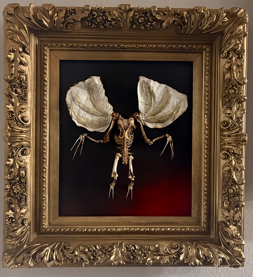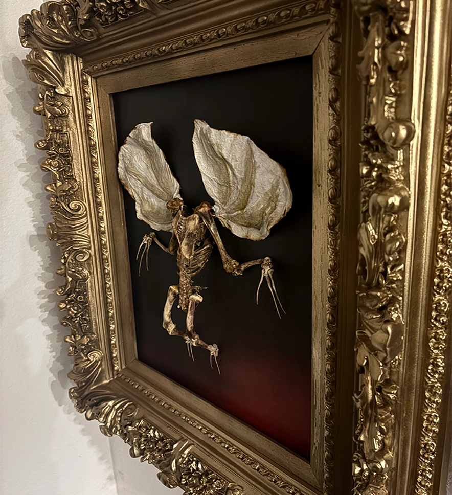 * Medium: Authentic Animal chicken bones hand-cleaned and naturally whitened metal gold colored rings, wire and paper.